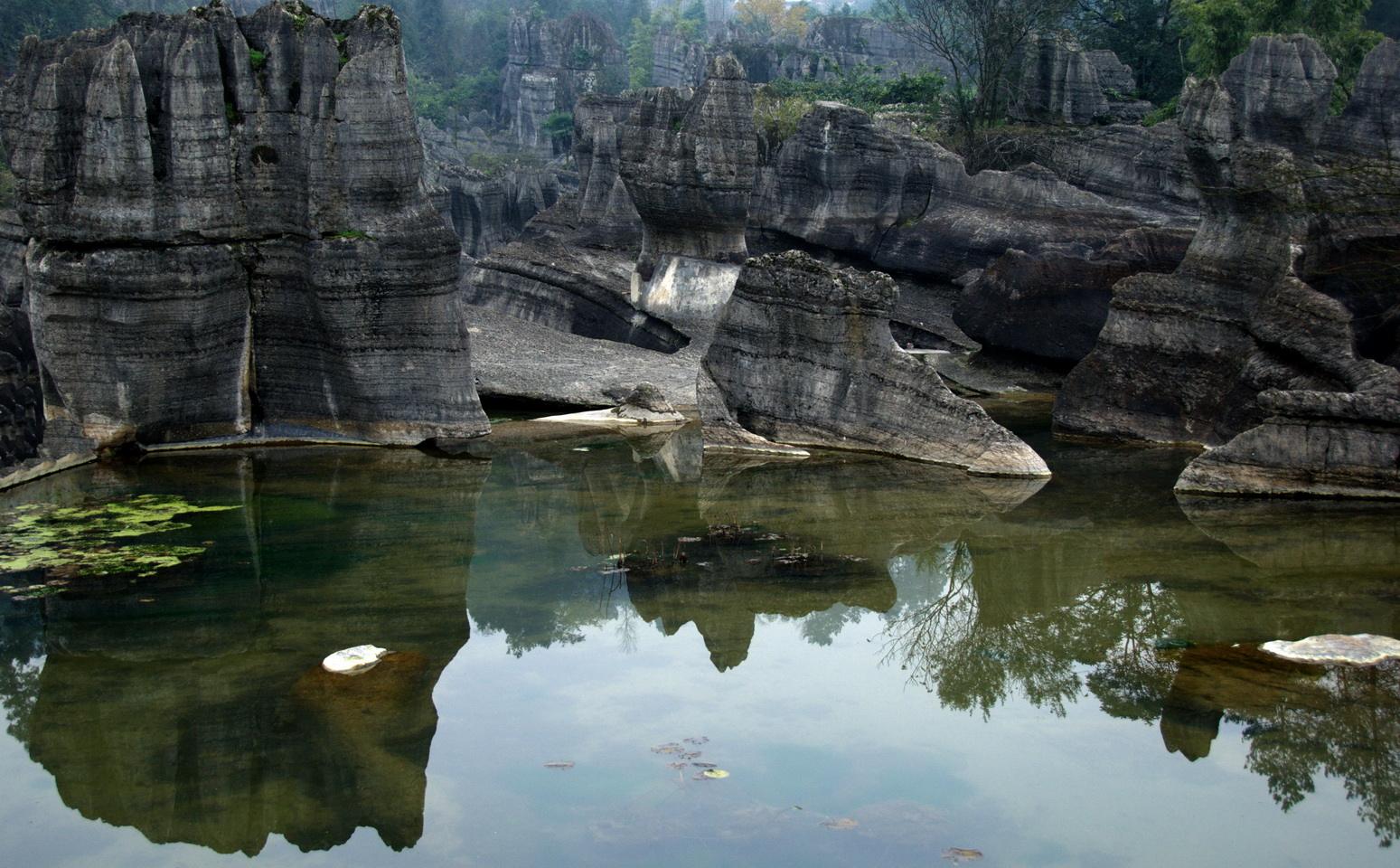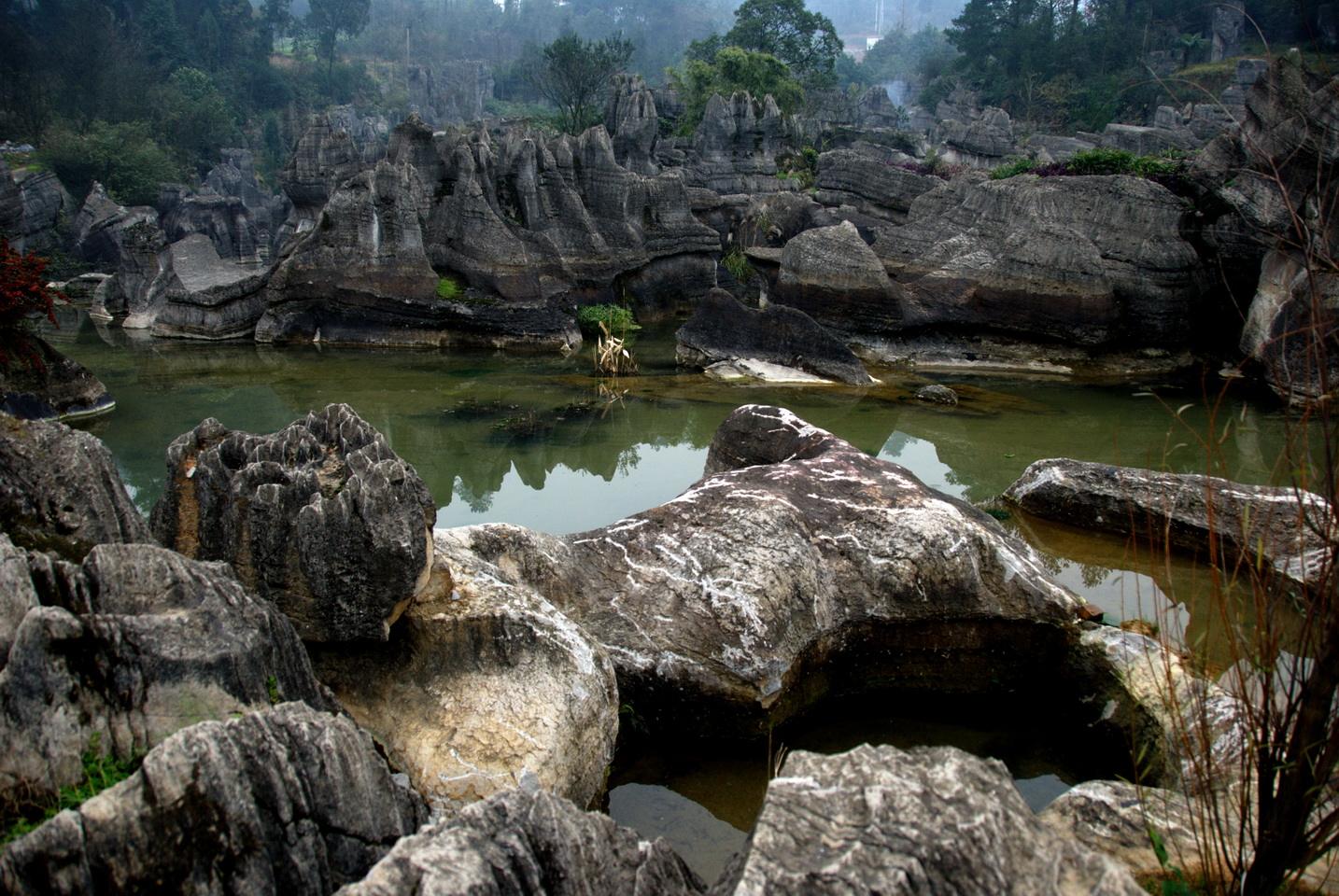 万盛石林是在距今4.65—6亿年期间,在海洋环境中沉积下来的,比云南路南石林早2亿年左右,是中国目前考证最为古老的石林,被喻为“石林之祖”。